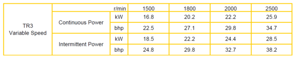 – Fixed speed – 1500 and 1800r/min.
